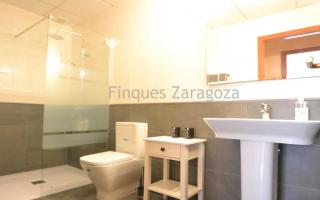 Regarding quality and features, the house has aluminum windows, a gas stove with electric oven, electric water heater, air conditioning in all rooms, and built-in wardrobes in every bedroom. The bathroom has been recently renovated and features a walk-in shower.