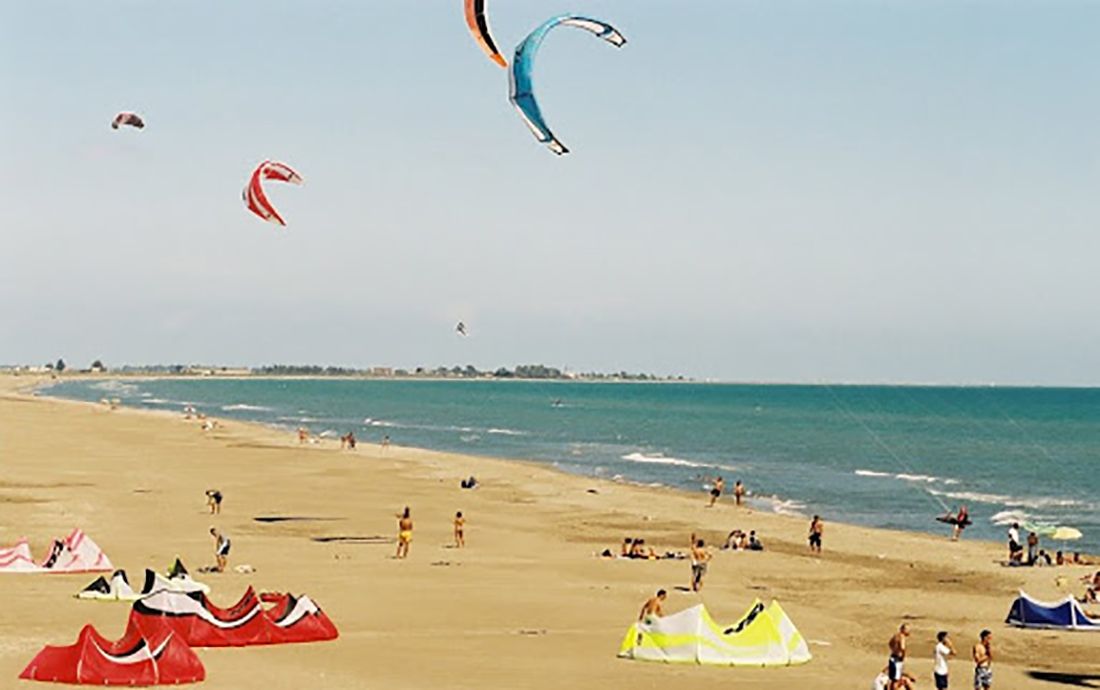 Mit einer Länge von fast 6 km und einer Breite von 200 m haben Sie genügend Platz für keine Strandnachbarn. Hervorzuheben sind die niedrigen Dünen und die Flora, die von den Reisfeldern und den Eukalyptusbäumen stammt, die dem Strand ihren Namen geben.